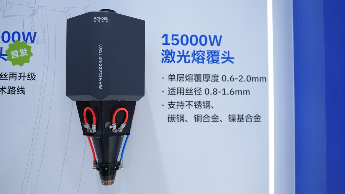 除了增材制造的丰富成果展示,激光熔覆领域我们也带来了全新看点——15000W激光熔覆头。单层熔覆厚度0.6-2mm,支持不锈钢、碳钢、铜合金、镍基合金等材料熔覆。