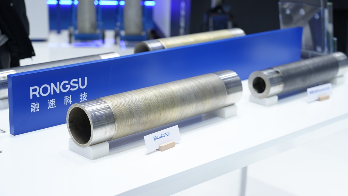 此次展出的全新技术路线创新成果——5000W超同轴激光沉积头,采用全新VEAM激光送丝技术路线,特殊光学结构设计,无需光纤连接,可避免激光回返对光纤的损伤,同时减少对激光器内部其他元件的伤害,增材效率大幅提升的同时,可稳定打印铝合金、铜等高反射金属材料。